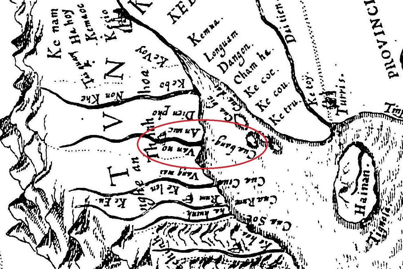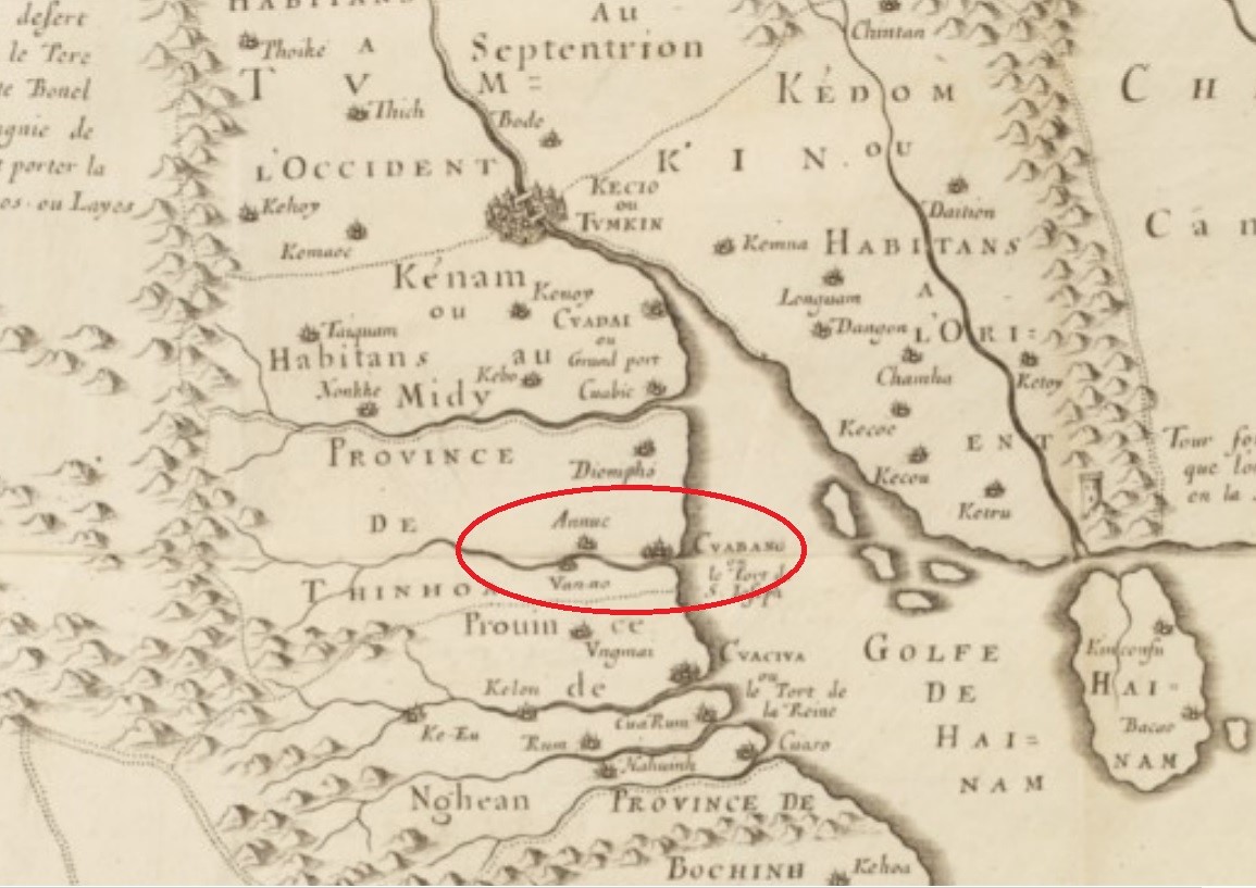 Những so sánh và tính toán trên đây xem ra cũng phù hợp với vị trí của Anvuc và Vanno trong tấm bản đồ được in trong cuốn Lịch sử Vương Quốc Đàng Ngoài. Trong tấm bản đồ này, Anvuc nằm ở phía bắc của con sông đổ ra Cuabang, còn Vanno nằm ở phía nam của con sông này. Hai địa danh này cùng nằm ở phía nam của Diempho, và phía bắc ranh giới giữa Thinhoa và Nghean. Những chi tiết này xem ra cũng phù hợp với khoảng cách giữa kinh thành với địa danh Che no 18ở chương 28 của cuốn Lịch sử Vương Quốc Đàng Ngoài 19. Chúng tôi xin được trích ra dưới đây một phần của bản đồ vừa nêu ở trên.
