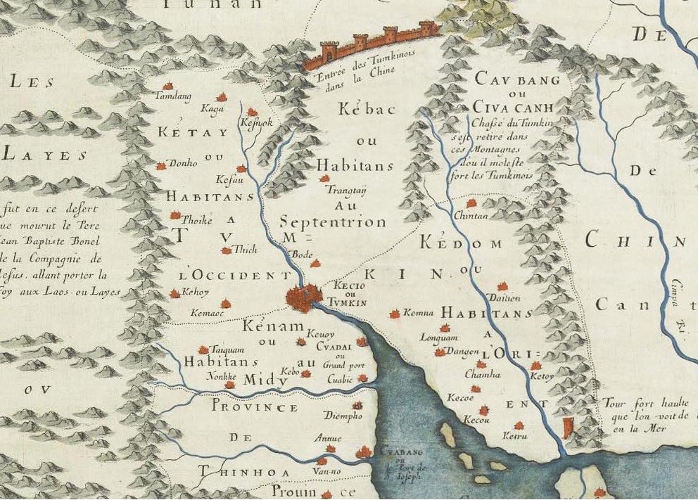 Chúng tôi cũng tìm thấy một bản đồ khác được cho là của linh mục A. de Rhodes với những thông tin tương tự, nhưng được trình bày hơi khác. Chúng tôi cho rằng bản đồ thứ hai này chính xác hơn, vì cho thấy ranh giới giữa Kénam - tức là Kẻ Nam, cũng là trấn Sơn Nam - và trấn Thanh Hoa nằm ở phía bắc của dòng sông đổ ra Cua bic 20, rất có thể là Chebich trong cuốn Lịch sử Vương Quốc Đàng Ngoài 21. Chúng tôi cũng xin được trích ra dưới đây một phần của tấm bản đồ này.
