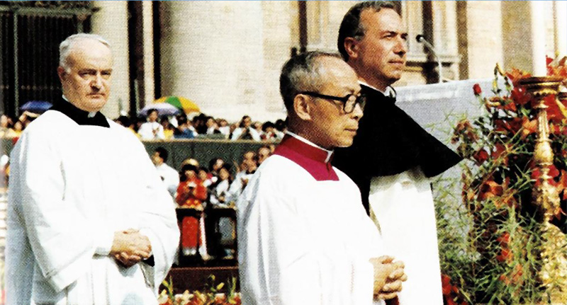 -- 117 Chân Phúc Tử Đạo tại Việt Nam, đứng tên đại diện tất cả là Linh mục Anrê Dũng Lạc. Hồ sơ 117 Chân Phúc Việt Nam gây chú ý nhất, vì đây là lần đầu tiên trong lịch sử 2000 năm của Giáo Hội mới có một vụ tuyên thánh một lần tới 117 Vị. Trước tiên, Luật sư Giulio Dante của Bộ Phong Thánh, bằng La ngữ, trình bày tính cách anh dũng tổng quát của Các Vị Chân Phúc. Sau đó, một viên chức của Văn phòng Quốc vụ khanh đọc lời yêu cầu của Đức Thánh Cha: Trước khi quyết định tuyên thánh, Ngài xin qúy vị Hồng Y, Tổng Giám mục và Giám mục góp ý kiến bằng cách viết hai chữ Placet (Thuận) hay Non Placet (Không thuận) và kí tên trên miếng giấy đã in sẵn, nhưng còn để trống. Hai viên chức nghi lễ cầm hai đĩa bạc lớn đi thu những lá phiếu. Sau khi kiểm phiếu và được sự đồng ý của toàn thể Cơ Mật Viện, Đức Giáo Hoàng đã ngỏ lời cám ơn qúy vị đã tới tham dự hôm đó, rồi cho lệnh công bố tin vui mừng: Vụ Án Phong Thánh Các Vị Tử Đạo tại Việt Nam đã được châu phê.