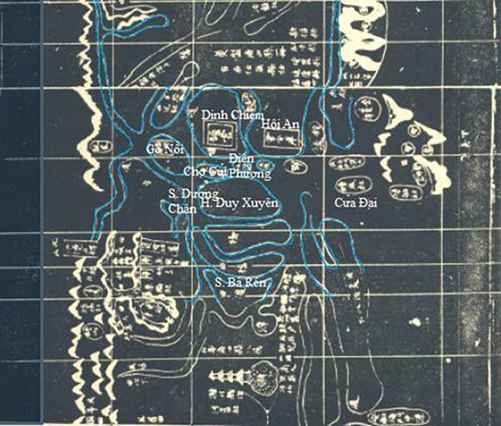Trong lịch sử, tương tự như vào đầu thế kỷ 17, Giáp Ngọ Bình Nam Đồ (Hình 18) trong tập bản đồ cổ Hồng Đức mà Bùi Thế Đạt đã vẽ và dâng lên Chúa Trịnh vào năm 1774 cho thấy địa lý sông ngòi trong vùng nam Điện Bàn vào thời khắc lịch sử này phản ảnh địa hình trong Hình 9 . Để bắt đầu trong công việc phân tích, chúng tôi tạm gọi đây là thời kỳ biến hóa của sông ngòi trong Chu Kỳ 1. Hãy xem Giáp Ngọ Bình Nam Đồ sau đây.