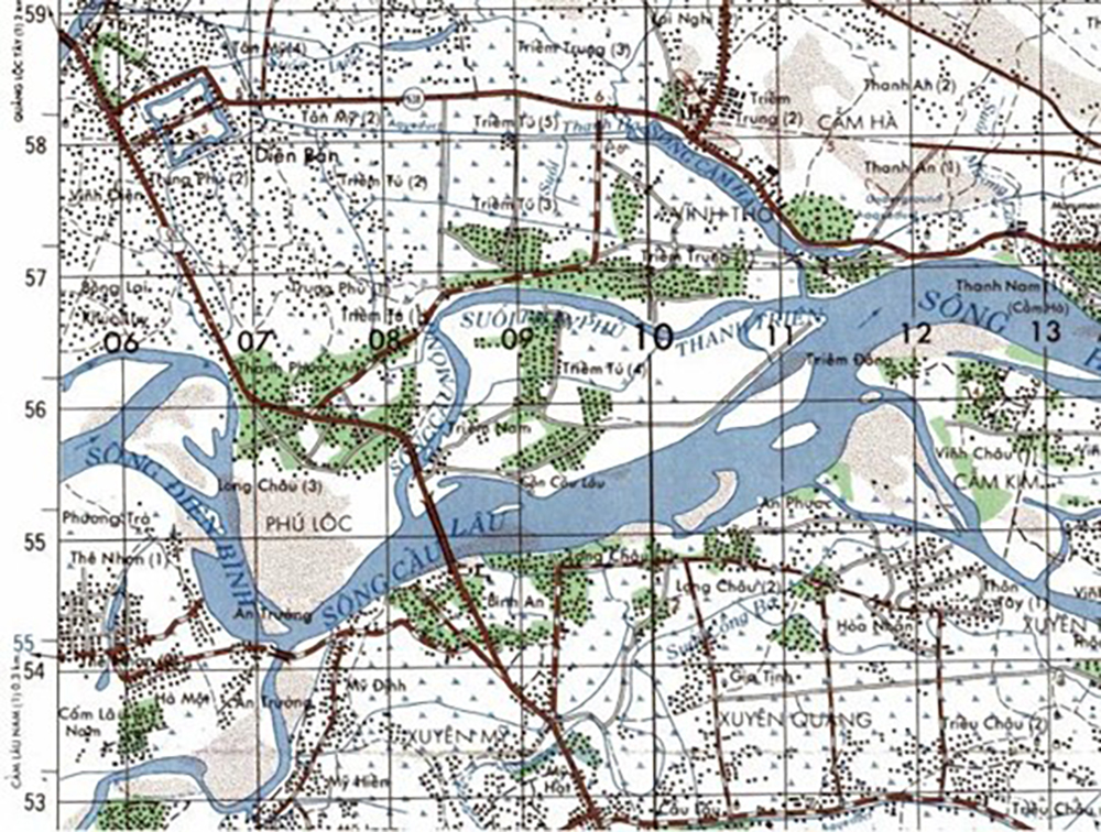 | 1972-1984 | 3 | lớn | lớn | nhỏ | con suối | T.X. Điện Bàn | Hình 24 – Quân lực Bộ binh Hoa Kỳ. Nguồn University of Texas. Địa hình giống như ngày nay (2023) |