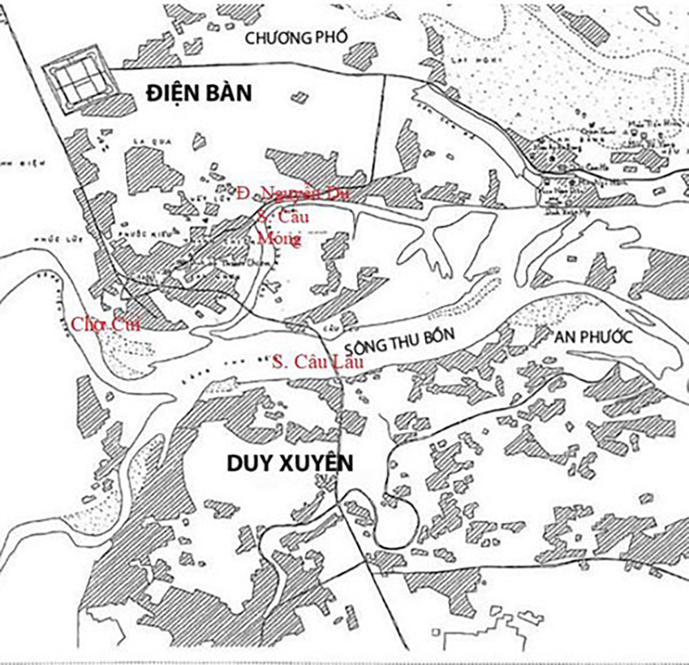 | 1930 | 3 | lớn | lớn | nhỏ | con suối | Diên Khánh | Hình 27. Nam Điện Bàn Dưới Thời Pháp Thuộc (1930); Địa hình giống như ngày nay (2023) |